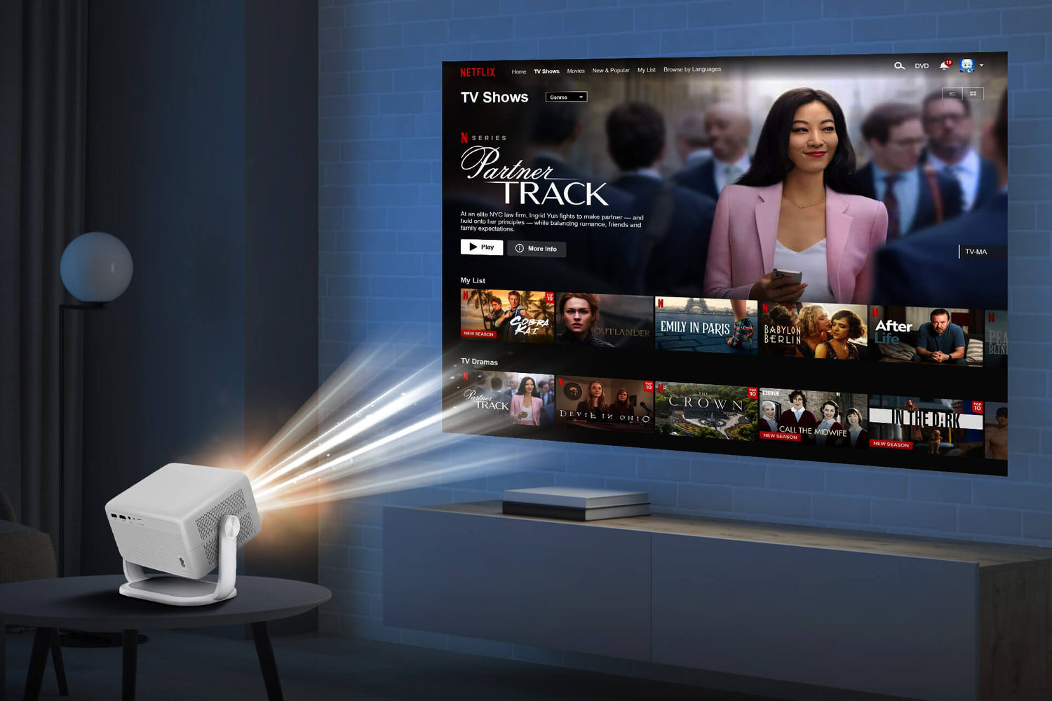 Transform any wall into a stunning 120” display that captures every detail in vivid color and clarity. Perfect for small bedrooms, cozy apartments, or on-the-go setups — it’s professional-grade projection that fits your life.